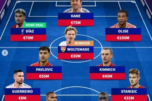 体育资讯7月30日讯 拜仁已经官宣签下利物浦边锋路易斯-迪亚斯,在穆西亚拉和戴维斯重伤半年的情况下,《转会市场》也据此预测了拜仁新赛季的主力阵容。