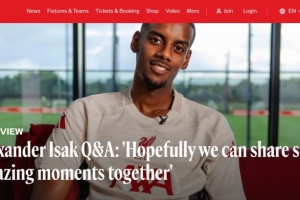体育资讯9月2日讯 利物浦已经官宣引进纽卡中锋伊萨克,后者也接受了俱乐部官网的问答采访。