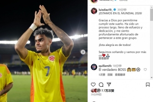 迪亚斯社媒晒出比赛照片,并写道:“我们晋级2026年世界杯!感谢上帝让我实现这个梦想。这是一段漫长而充满努力与奉献的历程,能成为这支伟大球队的一员,我深感荣幸。这份喜悦属于所有人!