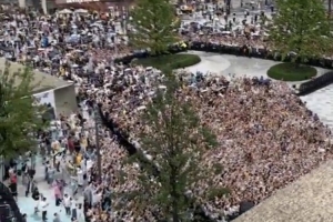 体育资讯9月7日讯 近日,美国媒体Legion Hoops晒出了詹姆斯中国行成都站万象城活动外场的震撼人群俯拍视频。