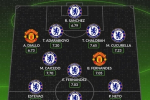 体育资讯9月20日讯 本轮英超焦点战曼联对阵切尔西即将打响,数据网站Whoscored也盘点了两队球员在本赛季英超评分最高阵容,其中切尔西9人入选,具体如下: