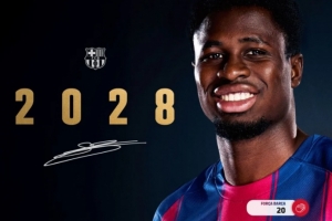 后场多面手!官方:巴萨和18岁后卫兰德里-法雷续约至2028年