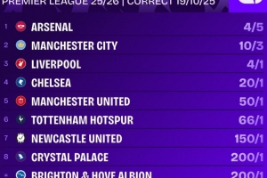 体育资讯10月20日讯 利物浦不敌曼联,遭遇联赛三连败。英超夺冠赔率方面,阿森纳以5赔4的赔率成为最大的夺冠热门。曼城以3赔10的赔率位居第二,利物浦则以1赔4的赔率排名第三。