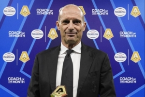 九月联赛三连胜!阿莱格里领取意甲九月最佳教练奖杯