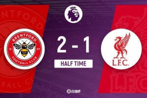 半场-利物浦暂1-2布伦特福德 手榴弹战术瓦塔拉闪击沙德单刀破门
