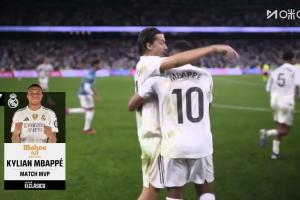 体育资讯10月27日讯 姆巴佩当选西班牙国家德比全场最佳球员。