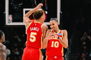 本场比赛老鹰的进攻非常流畅,全队送出37次助攻,投篮命中率51%,三分命中率41%,同时制造了湖人的19次失误。