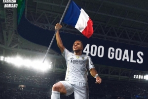 姆巴佩达成职业生涯400球里程碑,罗马诺社媒晒海报祝贺