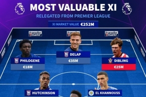 体育资讯4月28日讯 伊普斯维奇、莱斯特城以及南安普顿已经确定本赛季从英超降级,德转列三队中最贵身价阵容,拉姆斯代尔、德拉普在列。