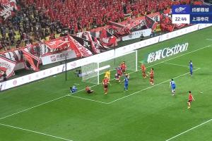 体育资讯05月02日讯 比赛第22分钟,申花右路任意球开出,朱辰杰后点头球攻门击中横梁。