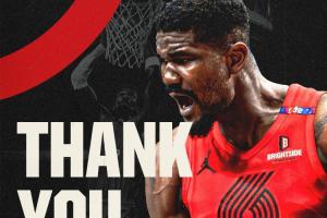 开拓者官方晒图致谢艾顿:“谢谢你的一切,DA(德安德烈-艾顿)。感谢你在撕裂之城度过的时光❤️。”