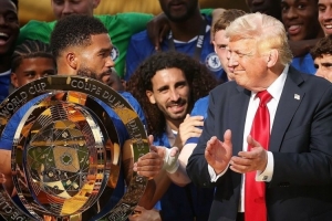 切尔西队长里斯-詹姆斯社媒晒出举起奖杯的照片,庆祝球队夺冠,颁奖嘉宾美国总统特朗普入镜。