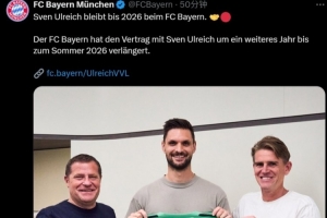 体育资讯7月29日讯 拜仁已经官宣同36岁门将乌尔赖希续约1年,后者也将继续担任诺伊尔和乌尔比希之后的第三门将。
